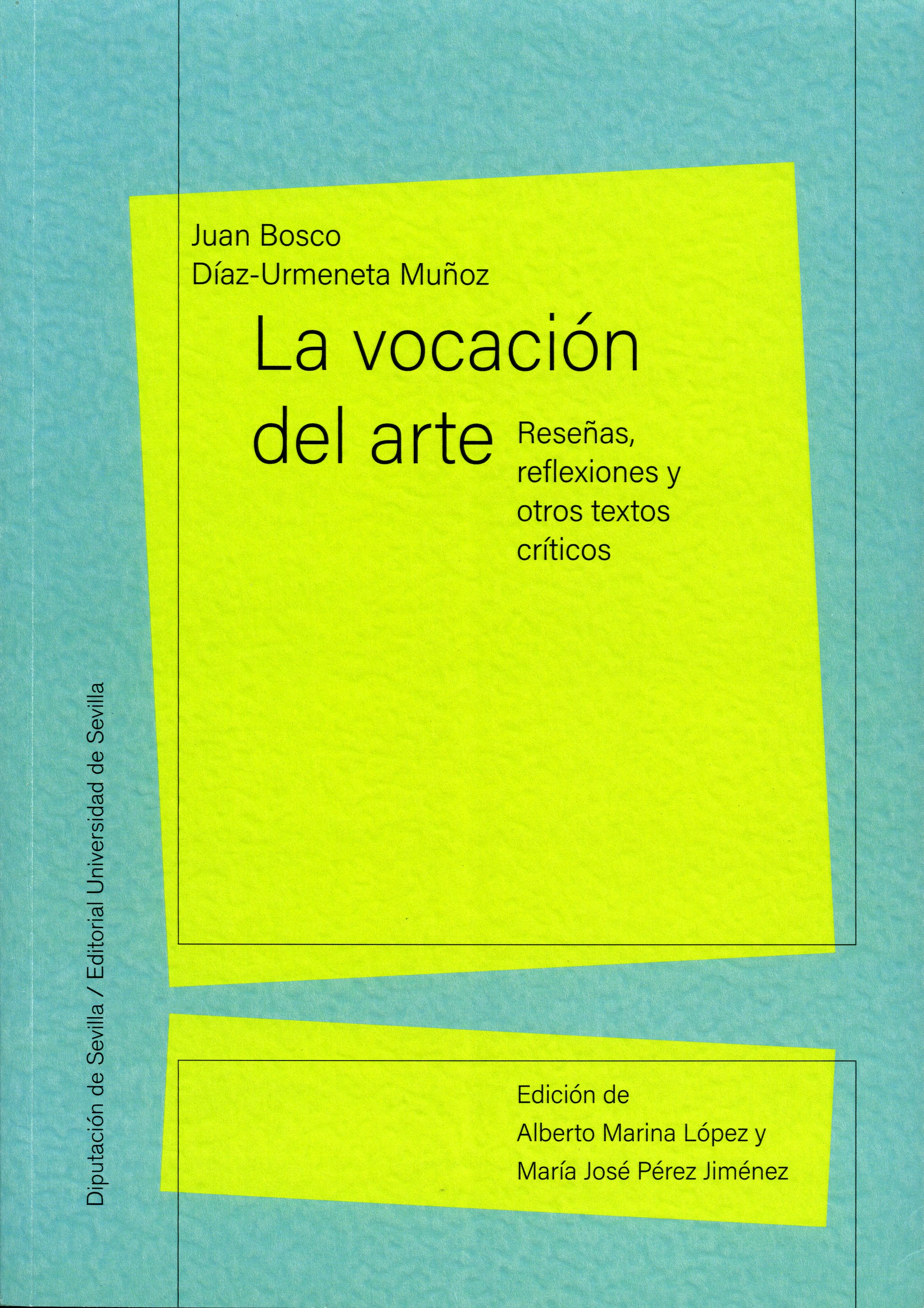 Juan Bosco Díaz-Urmeneta Muñoz (Sevilla, 1944-2021) Doctor por la Universidad de Sevilla de cuya Facultad de Filosofía fue profesor titular, adscrito al Departamento de Estética y Teoría de las Artes, también ejerció la docencia en otras facultades, como la de Ciencias de la Información, donde formó parte del decanato que elaboró los nuevos planes de estudios y su conversión en la actual Facultad de Comunicación. Paralelamente, desarrolló durante más de dos décadas una ininterrumpida actividad como crítico de arte desde su incorporación en 1999 al equipo editorial y de redacción del suplemento Culturas, del Diario de Sevilla. Actividad que también mantuvo en el suplemento cultural Babelia, del periódico nacional El País. Como investigador y ensayista abarcó, además de la Teoría del Arte y la Estética contemporánea, la Estética renacentista, el Romanticismo, la Ilustración y el pensamiento político y estético de Isaiah Berlin. Fue además promotor y comisario de proyectos artísticos y autor del diseño y dirección de numerosos ciclos de estudio y cursos sobre comportamientos artísticos contemporáneos, entre los que destaca el curso Transformaciones, cuyas trece primeras ediciones dirigió. Entre sus publicaciones, sin contar sus textos para revistas, libros colectivos y catálogos, deben mencionarse: Individuo y racionalidad moderna. Una lectura de Isaiah Berlin (Universidad de Sevilla, 1994); La tercera dimensión del espejo. Ensayo sobre la mirada renacentista (Universidad de Sevilla, 2004); Carmen Laffón. Apuntes para una biografía artística (Diputación de Sevilla, 2009); Joaquín Sáenz. Una poética del paisaje (Diputación de Sevilla, 2011) y Teresa Duclós, un sostenido diálogo con la pintura (Diputación de Sevilla, 2017).