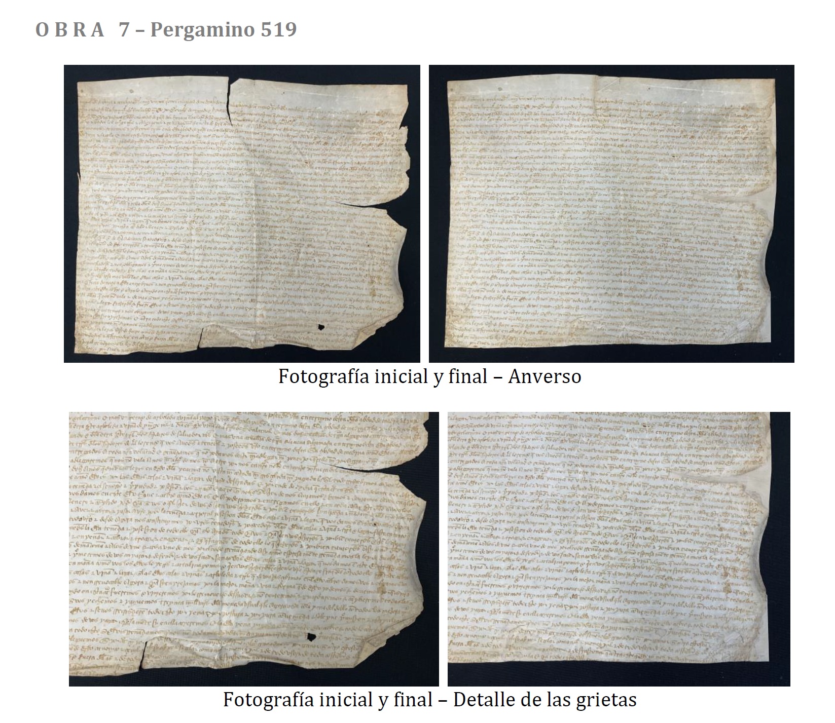 Las intervenciones se han realizado en atención al contexto histórico y archivístico de las obras y han tenido por objeto por un lado estabilizar y consolidar los documentos garantizando su permanencia y durabilidad, y por otro lado permitir su consulta y exposición en un buen estado de conservación. Así mismo se han aplicado tratamientos específicos e individualizados adaptados a cada documento en función de sus alteraciones, necesidades y estado de conservación. El trabajo ha incluido la dotación a las obras de sistemas de protección con materiales de calidad de archivo, libres de ácidos, con reserva alcalina, libre de ligninas, resistentes a la luz, estables y que cumplen los requerimientos definidos por las normas técnicas internacionales aplicables de permanencia, durabilidad, y estabilidad física y química.